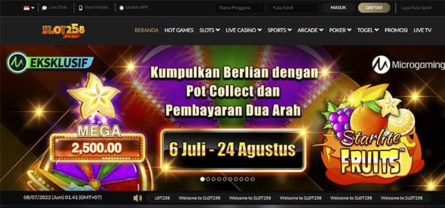 Apakah sudah benar anda memilih situs Slot258? Anda bisa membuktikannya melalui review-review yang ada di Google, Facebook, Twitter dan Social media lainnya. Bisa dikatakan, Slot258 sebagai situs judi slot online paling populer di tahun 2022 ini. Pertama dilihat dari metode deposit via bank lokal besar dan juga pulsa yang online selama 24 jam bisa menjadi nilai plus dari situs judi slot online. Lalu yang kedua adalah banyaknya permainan judi online yang ditawarkan oleh Slot258 dengan teknologi terbaru seperti seamless wallet dari nexusengine. Kumpulan permainan judi online ini menjadi nilai tambah bagi para pemain dalam menentukan daftar situs judi slot online terpercaya nomor 1 di tahun 2022.